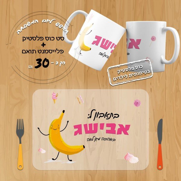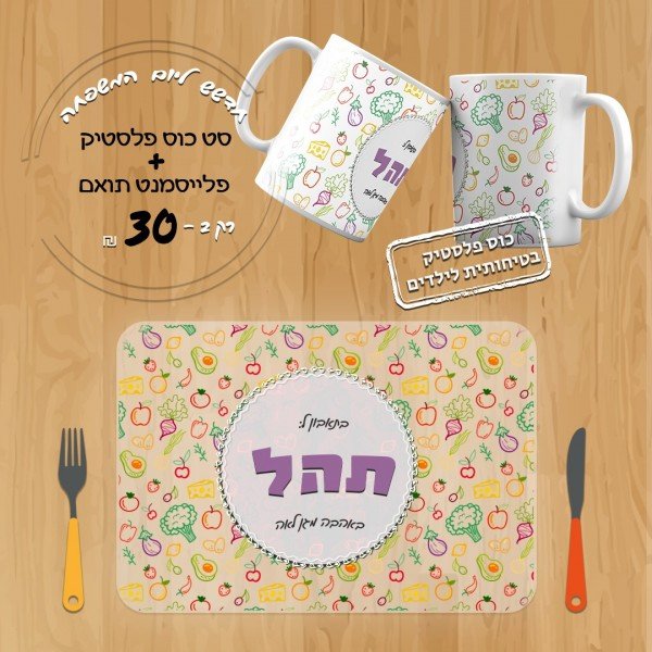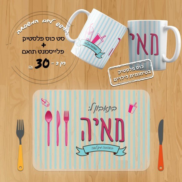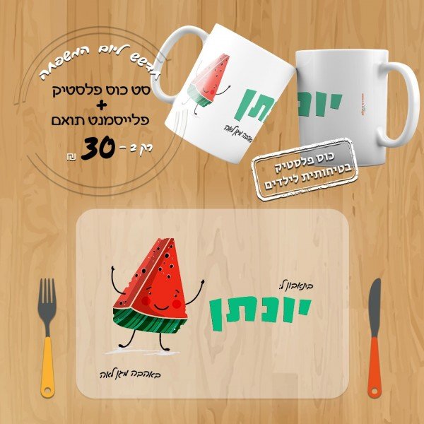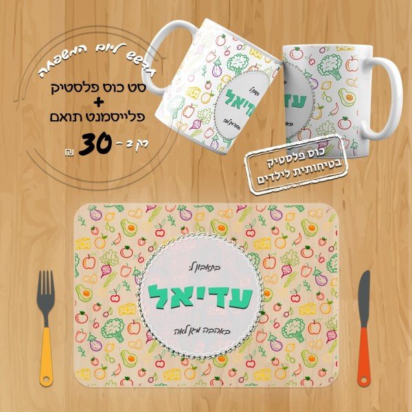 סט כוס פלסטיק ופלייסמנט תואם דגם 4 בנים