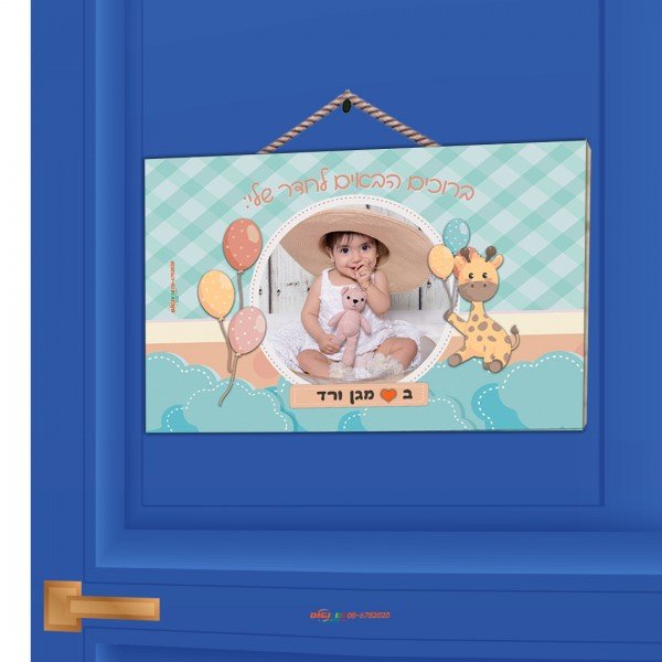 שלט לדלת מעץ דגם 4 עם שם ותמונה