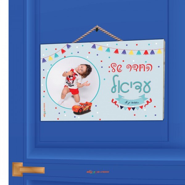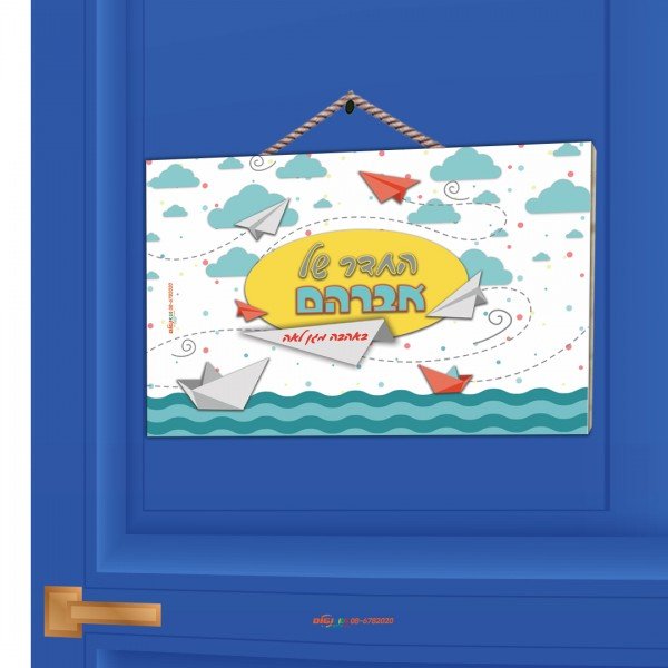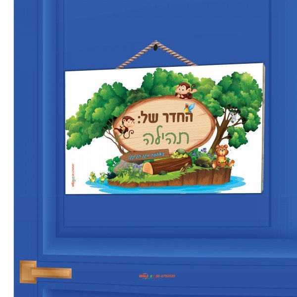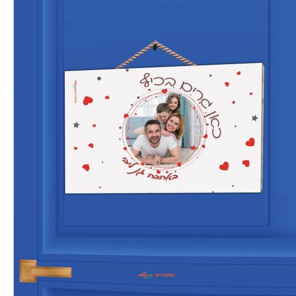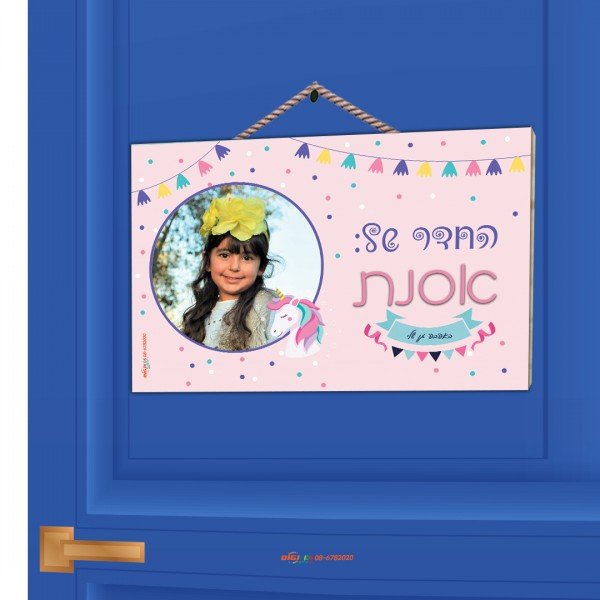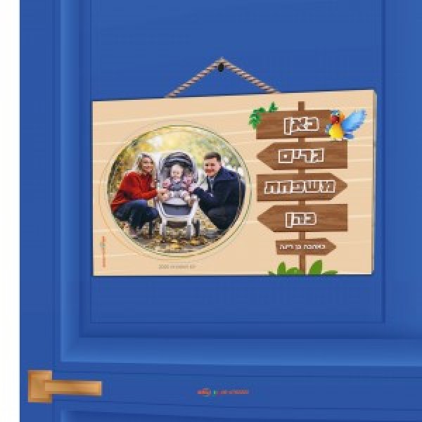שלט לדלת מעץ דגם 3 עם שם ותמונה