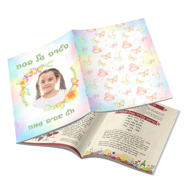 הגדה לפסח עם עיצוב ייחוד יעם תמונה או שם של הילד