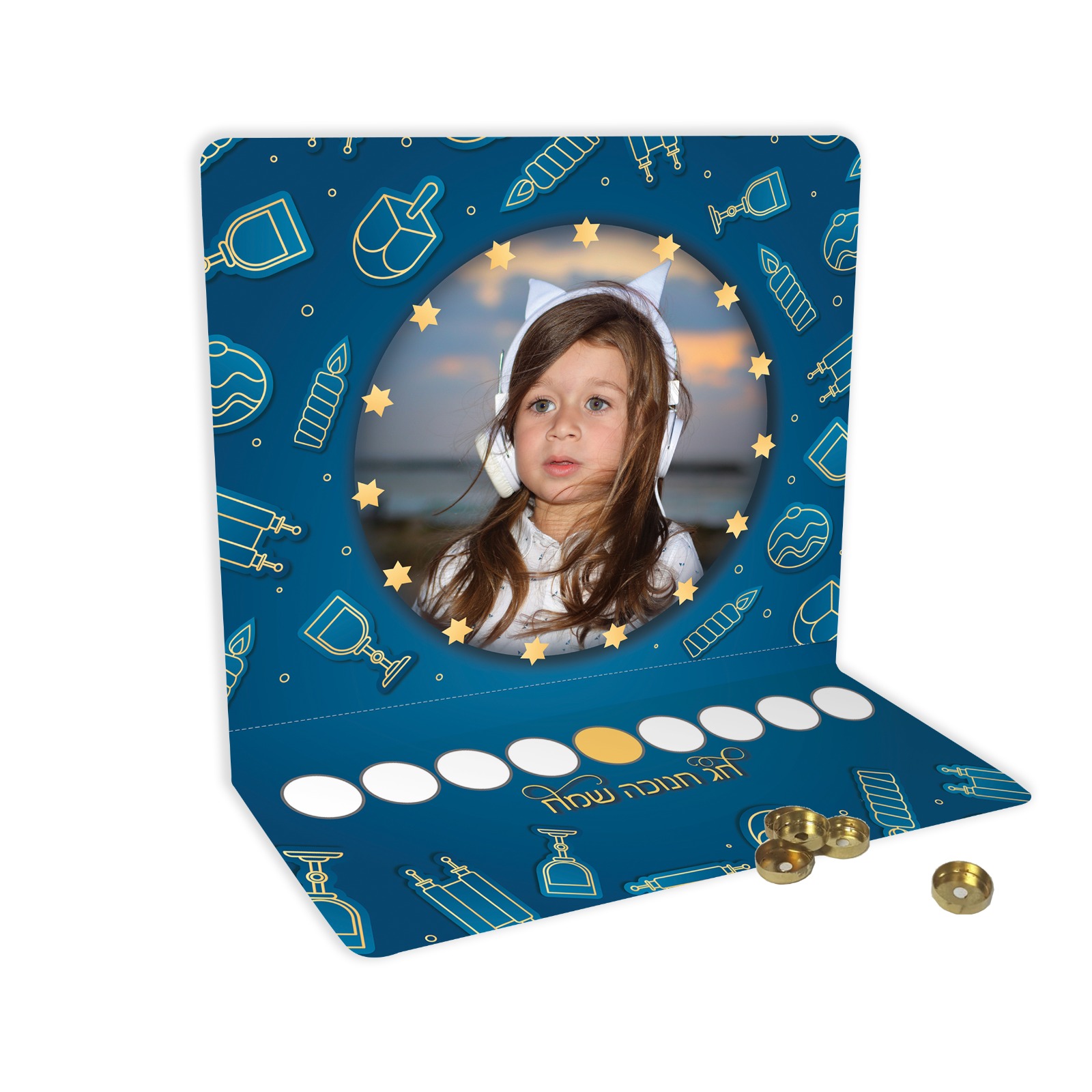 חנוכייה עומדת דגם מאלומיניום עם תמונה של הילד