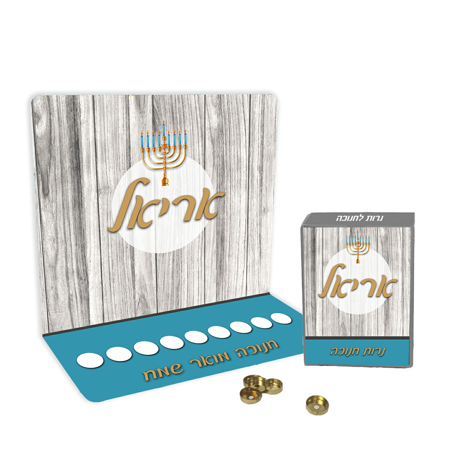 חנוכיה עומדת עם מדבקה לקופסת נרות חנוכה