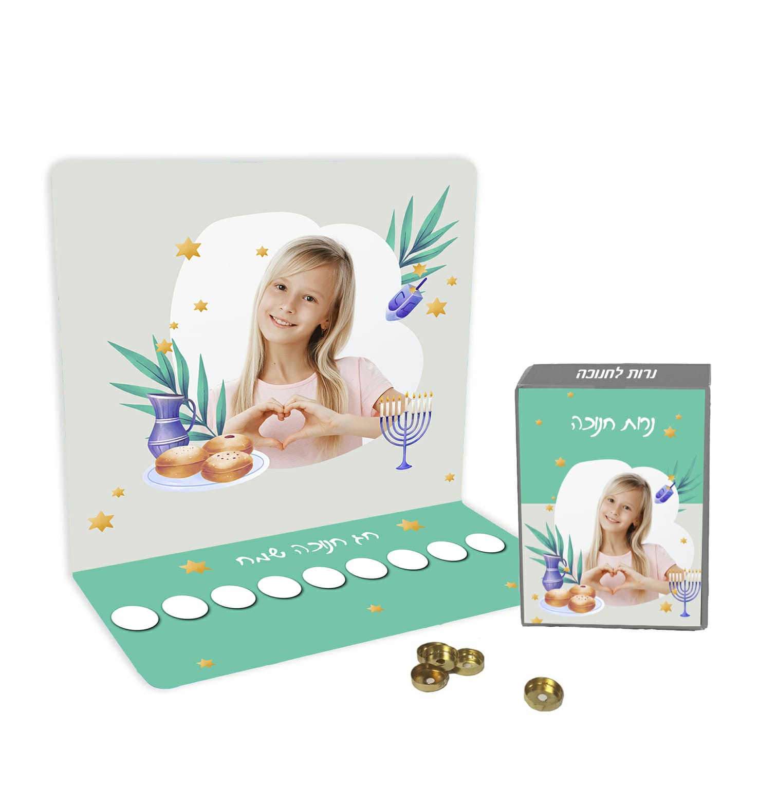 חנוכיה עומדת עם מדבקה לקופסת נרות חנוכה דגם 2