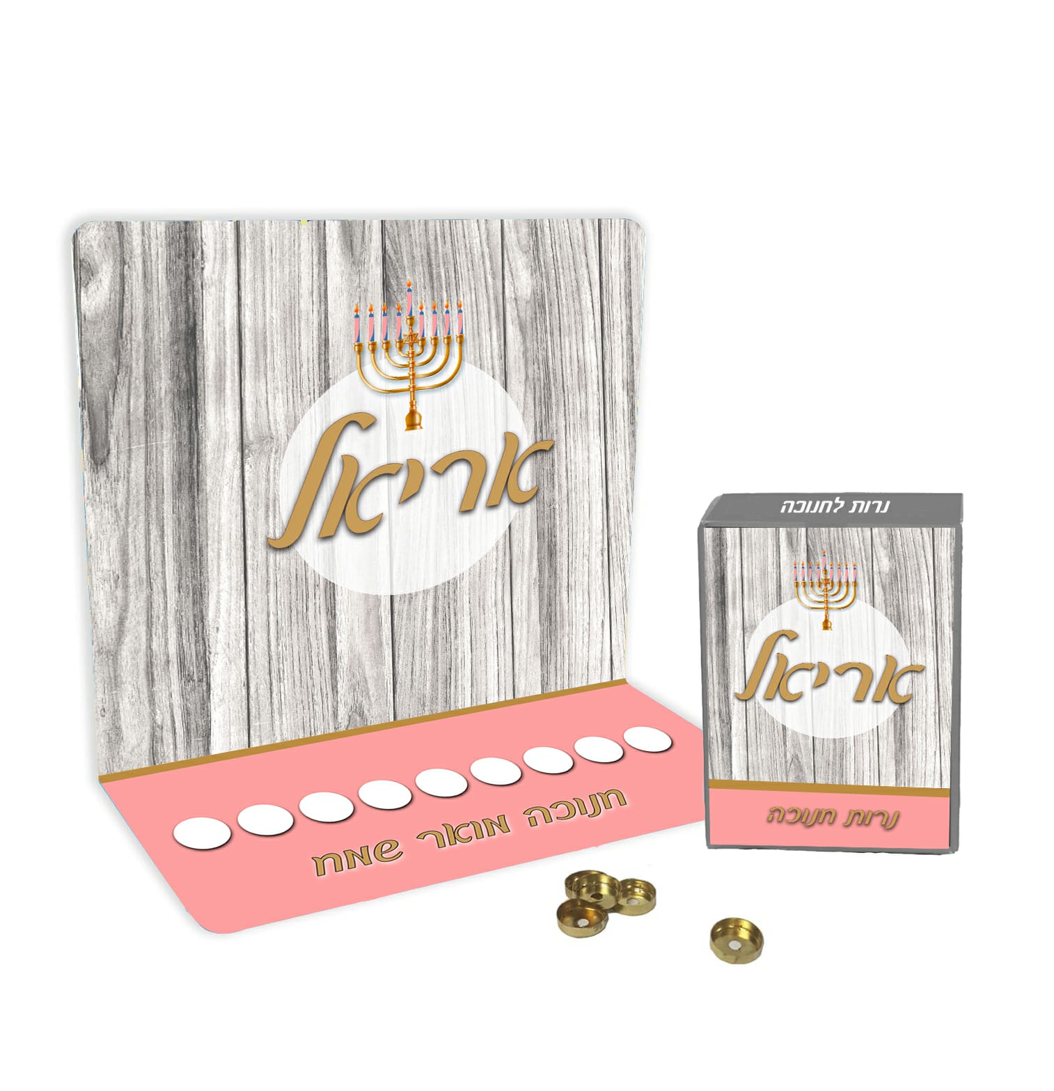 חנוכיה עומדת עם מדבקה לקופסת נרות חנוכה דגם 4