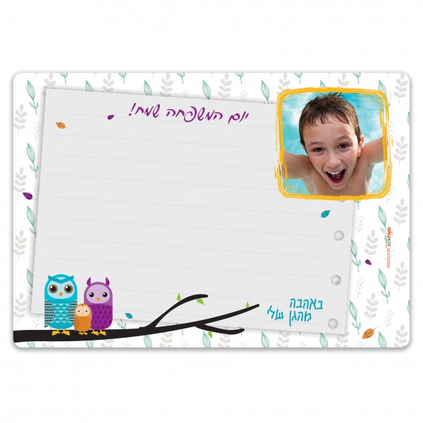 לוח ממו מחיק בעיצוב מיוחד ותמונה של הילד