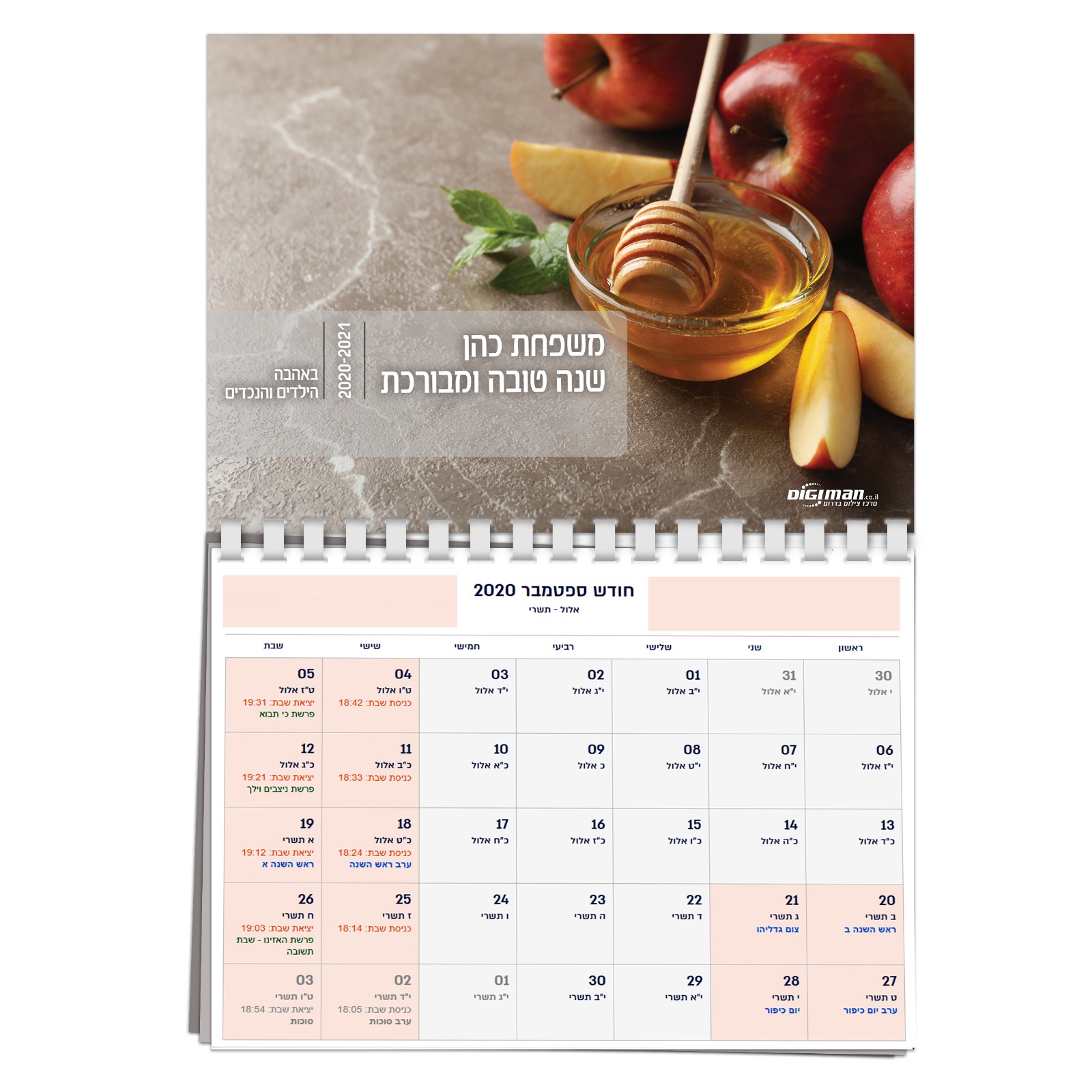לוח שנה גודל 20X30 בעיצוב מיוחד כולל: