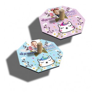 סביבון עץ עם הדפסת תמונה או שם של הילד
