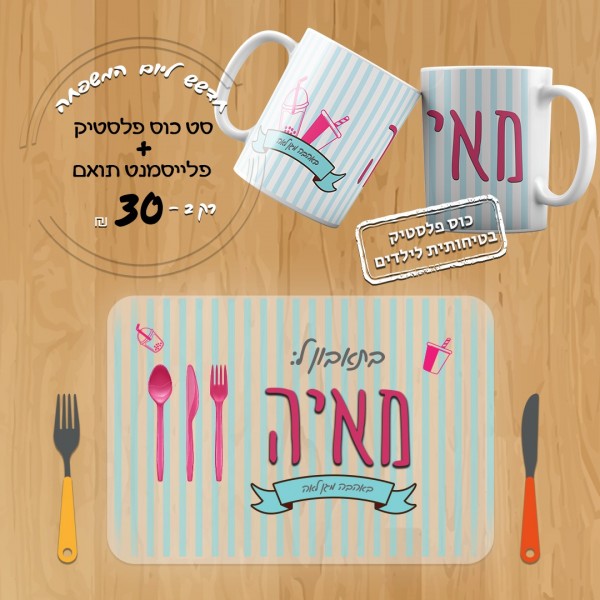 סט כוס פלסטיק ופלייסמנט תואם דגם 3