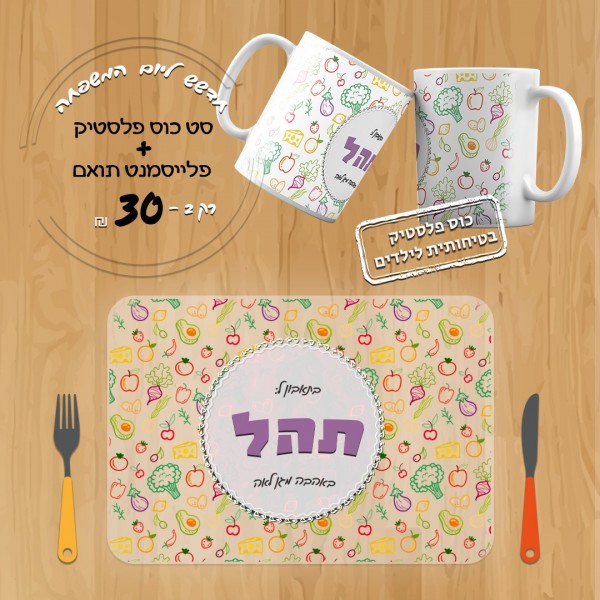 סט כוס פלסטיק ופלייסמנט תואם דגם 4 בנות