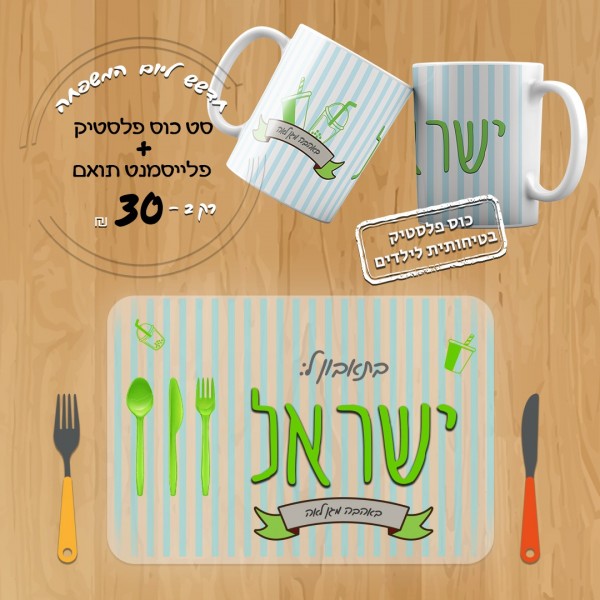 סט כוס פלסטיק ופלייסמנט תואם דגם 6