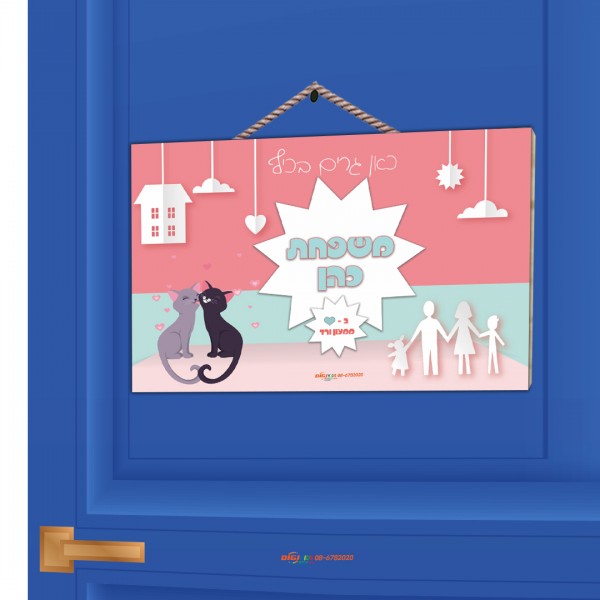שלט לדלת מעץ דגם 3 עם שם ותמונה